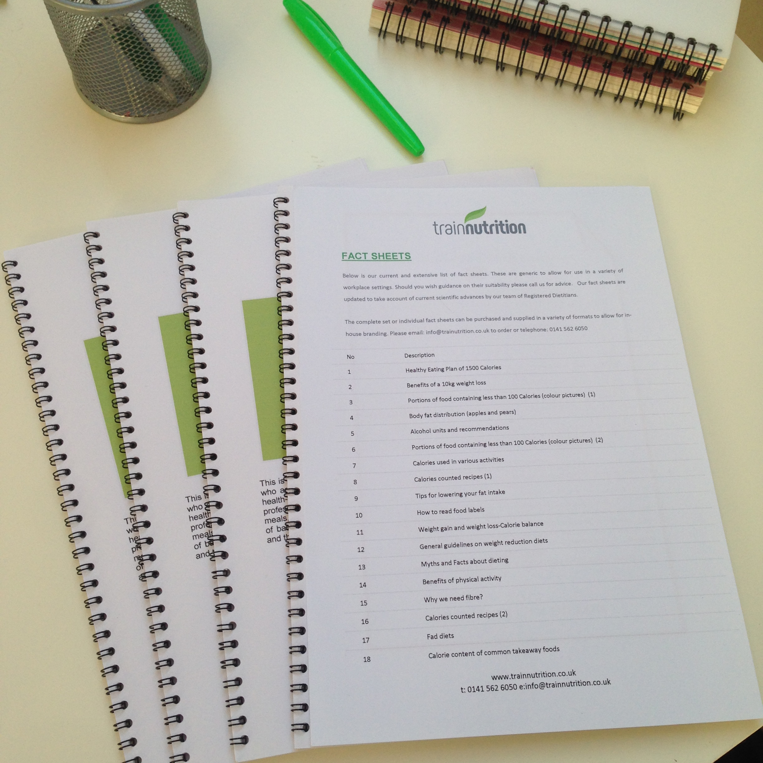We have an extensive range of topical and informative fact sheets containing 45 different topics which can be used to assist the delivery of an in-house healthy eating/wellbeing session or as handouts to offer clients.